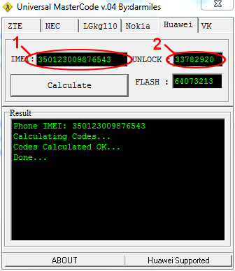 2. Télécharger le logiciel Universal Master Code à partir de ce lien: http://www.mediafire.com/download/agcecavwcs8iar2/Unlock+code+by+IMEI.rar ouvrez le puis entrez l'IMEI comme sur l'image