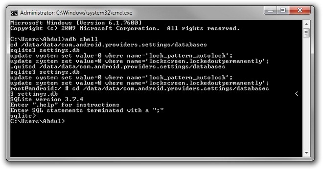 - update system set value=0 where name=’lockscreen.lockedoutpermanently’;